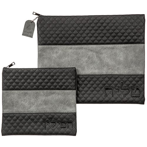 תיק טלית ותפילין – כיסוי לטלית ותפילין שחור אפור דמוי עור רקמה טלית ותפילין