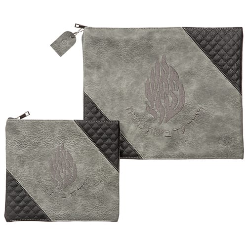 תיק טלית ותפילין – כיסוי לטלית ותפילין שחור אפור דמוי עור רקמה האש שלי