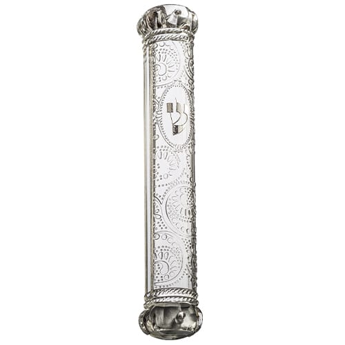 בתי מזוזה – פלסטיק שקוף/לבן /כסף גודל 12/15כתר