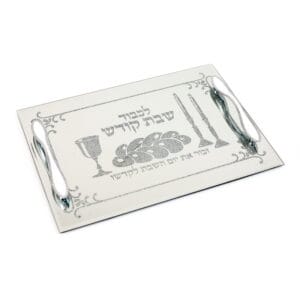 מגש לחלה זכוכית דגם שבת  ידיות לבן