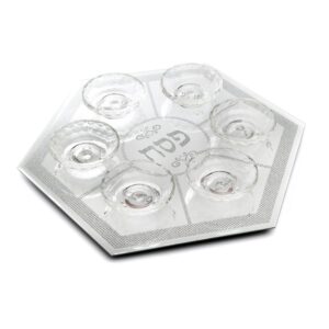 כמות של קערת פסח - קערת פסח זכוכית משושה אבנים כסף